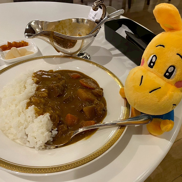 自分でカレーをかけて、まさにホテルカレーって感じだったよん♪大きい柔らかい牛肉があって食べ応えバッチリ!カレーの味も濃くて美味しかったよん♪